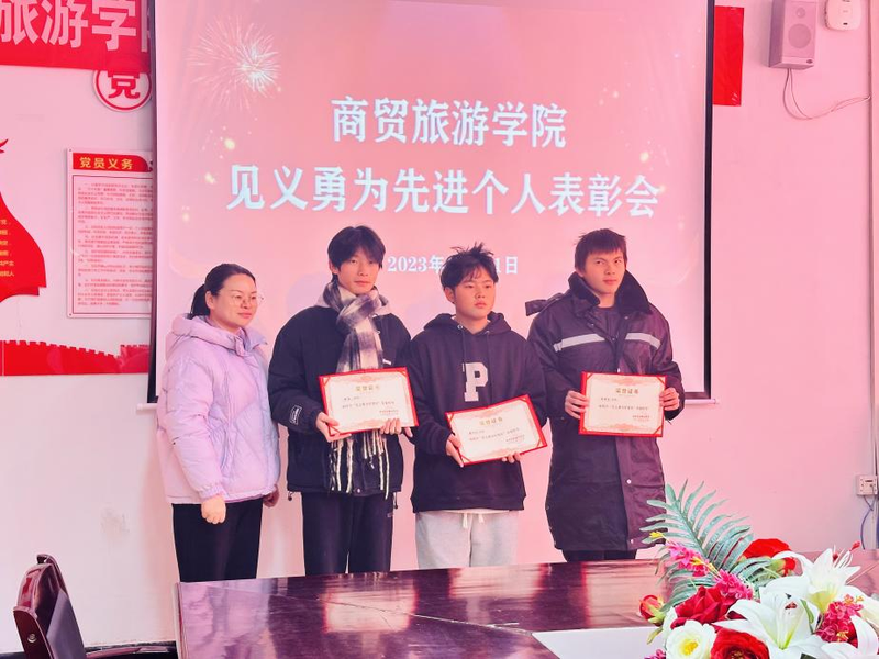 12月20日,云顶国际vip.888旅游2302班董向阳、郑劲、杨坤智等三名同学外出时,及时挽救了一位轻生老人的生命,事后不留名,公安机关及被救助老人家属到公司多方寻找才最终找到三位见义勇为好青年。对于这一义举,政府部门、公安机关给予了高度评价。三名同学用自己的实际行动展示了新时代民院学子的良好综合素质,体现了当代老员工高度的社会责任感和敢于担当的精神。